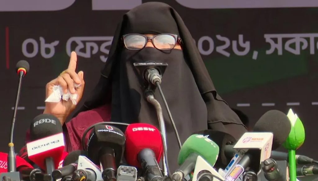 ঢাকা–১১ আসনে জামায়াতে ইসলামী সমর্থিত ১১ দলীয় জোটের এক নির্বাচনী সমাবেশে শহীদ শরীফ ওসমান হাদির বোন পরিচয়ে বক্তব্য দেওয়া এক নারীর প্রকৃত পরিচয় নিয়ে বিভ্রান্তি তৈরি হয়েছে। শবনম খাদিজা নামের ওই নারী সমাবেশে বক্তব্য দিয়ে জোটের প্রার্থী নাহিদ ইসলামের পক্ষে ভোট চান।