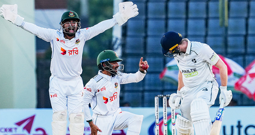আইরিশদের বিপক্ষে বাংলাদেশ লিড নেয় ৩০১ রানের। বড় লিড পার হওয়াই চ্যালেঞ্জ ছিল আইরিশদের জন্য। তৃতীয় দিন শেষে ৮৫ রানে ৫ উইকেট হারিয়ে সেটি আরও কঠিন হয়ে ওঠে। আগেরদিন যত দ্রুত খেলা শেষ হওয়ার ইঙ্গিত মিলেছিল চতুর্থ দিনে সেরকম কিছু হয়নি। মধ্যাহ্ন বিরতিতে যাওয়ার সময় আইরিশরা ৭ উইকেট তোলে ১৯৮ রান। বিরতি থেকে ফিরে আগ্রাসী হয়ে উঠলেও, তাইজুল-মুরাদদের সামনে বেশিক্ষণ টিকতে পারেননি নেইল-ম্যাককার্থিরা। ২৫৪ রানে গুটিয়ে গেছে বাংলাদেশ।