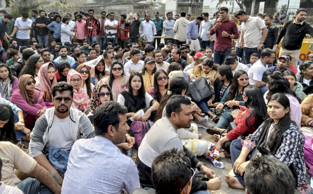 ব্যালট অনিয়মের অভিযোগে ইসির সামনে দ্বিতীয় দিনের মতো ছাত্রদলের অবস্থান
