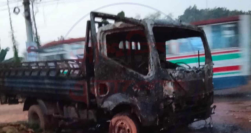 আশুলিয়ায় পিকআপে অগ্নিসংযোগ