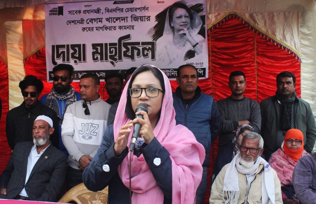 দোয়া মাহফিলে স্থানীয় বিএনপি নেতাকর্মী, সমাজের গণ্যমান্য ব্যক্তি ও সাধারণ মানুষ উপস্থিত ছিলেন। শেষে বেগম খালেদা জিয়ার রুহের মাগফেরাত এবং দেশের শান্তি ও কল্যাণ কামনা করে বিশেষ দোয়া করা হয়।