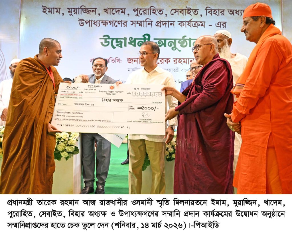 সরকারের নতুন আর্থিক সহায়তা কর্মসূচির আওতায় প্রথম পর্যায়ে ৪ হাজার ৯০৮টি মসজিদ, ৯৯০টি মন্দির ও ১৪৪টি বৌদ্ধ বিহারের মোট ১৬ হাজার ৯৯২ জন ধর্মীয় নেতা মাসিক সম্মানী পাচ্ছেন বলে জানান প্রধানমন্ত্রী। পর্যায়ক্রমে সারা দেশের প্রয়োজনীয় ব্যক্তিদের এ কর্মসূচির আওতায় আনা হবে।