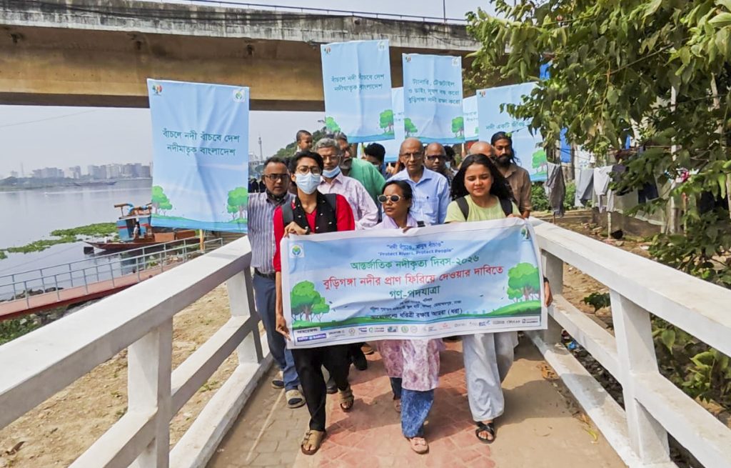 আন্তর্জাতিক নদীকৃত্য দিবস উপলক্ষে ঢাকায় বুড়িগঙ্গা নদীর প্রাণ ফিরিয়ে দেওয়ার দাবিতে গণ পদযাত্রা কর্মসূচি অনুষ্ঠিত হয়েছে। পরিবেশ ও জলবায়ু বিষয়ক নাগরিক সংগঠন ধরিত্রী রক্ষায় আমরা (ধরা) এর উদ্যোগে শনিবার রাজধানীর বছিলা থেকে হাইক্কার খাল পর্যন্ত এই পদযাত্রা অনুষ্ঠিত হয়।