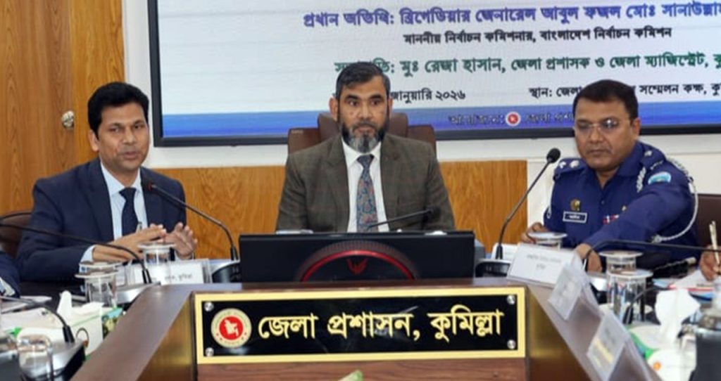 সোমবার (২৭ জানুয়ারি) বিকেলে কুমিল্লা জেলা প্রশাসক ও রিটার্নিং কর্মকর্তার কার্যালয়ের সম্মেলন কক্ষে আয়োজিত এক মতবিনিময় সভায় এসব কথা বলেন তিনি। সভাটি অনুষ্ঠিত হয় ত্রয়োদশ জাতীয় সংসদ নির্বাচন ও গণভোট উপলক্ষ্যে গঠিত আইনশৃঙ্খলা রক্ষাকারী সেল, ভিজিল্যান্স ও অবজারভেশন টিমের সঙ্গে।