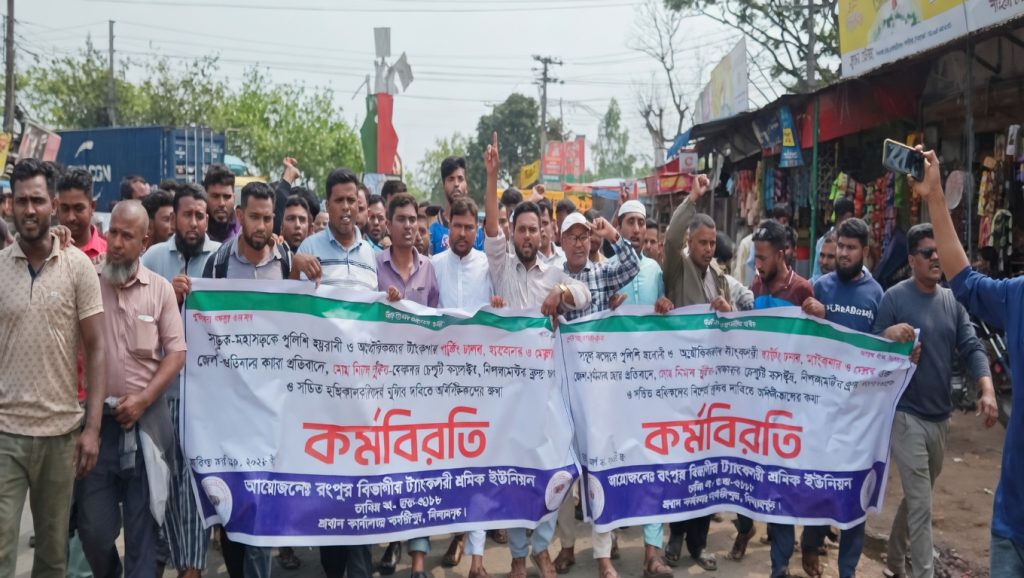 তেল চুরির মামলায় তিন ট্যাংক লরি শ্রমিককে কারাদণ্ড ও জরিমানার প্রতিবাদে রংপুর বিভাগের আট জেলায় অনির্দিষ্টকালের কর্মবিরতি শুরু করেছেন লরি শ্রমিকরা। এর ফলে উত্তরাঞ্চলের বিস্তীর্ণ এলাকায় জ্বালানি তেল সরবরাহ কার্যত বন্ধ হয়ে গেছে এবং পরিবহন ও দৈনন্দিন কার্যক্রমে ভোগান্তির আশঙ্কা তৈরি হয়েছে।